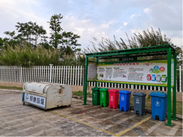 圖為公司下屬子公司南寧水建公司規(guī)范設(shè)置垃圾分類亭