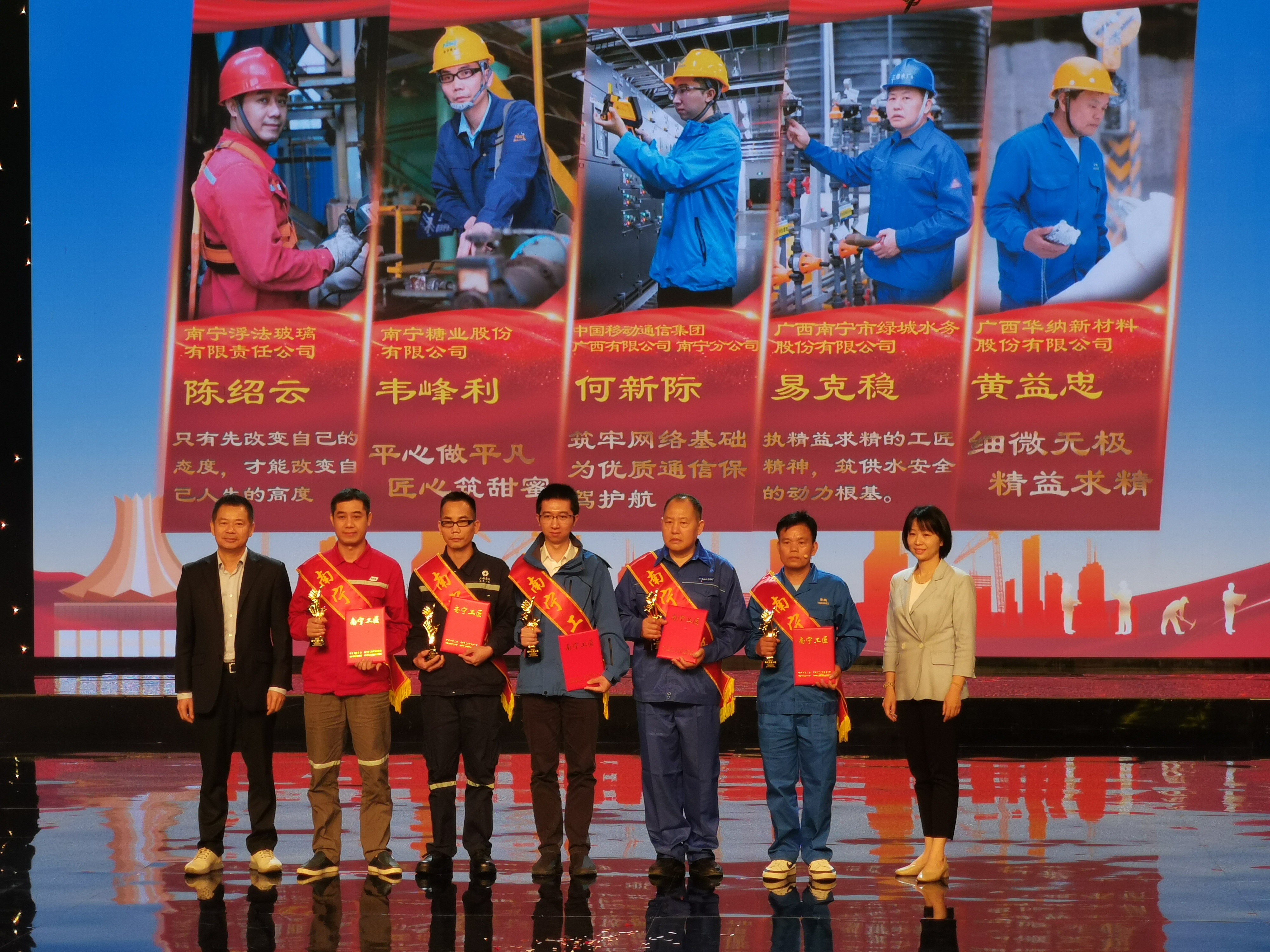南寧市2022年度“南寧工匠”命名暨2023年度“南寧工匠”選樹媒體通氣會上,公司員工易克穩(右三)榮獲2022年“南寧工匠”殊榮