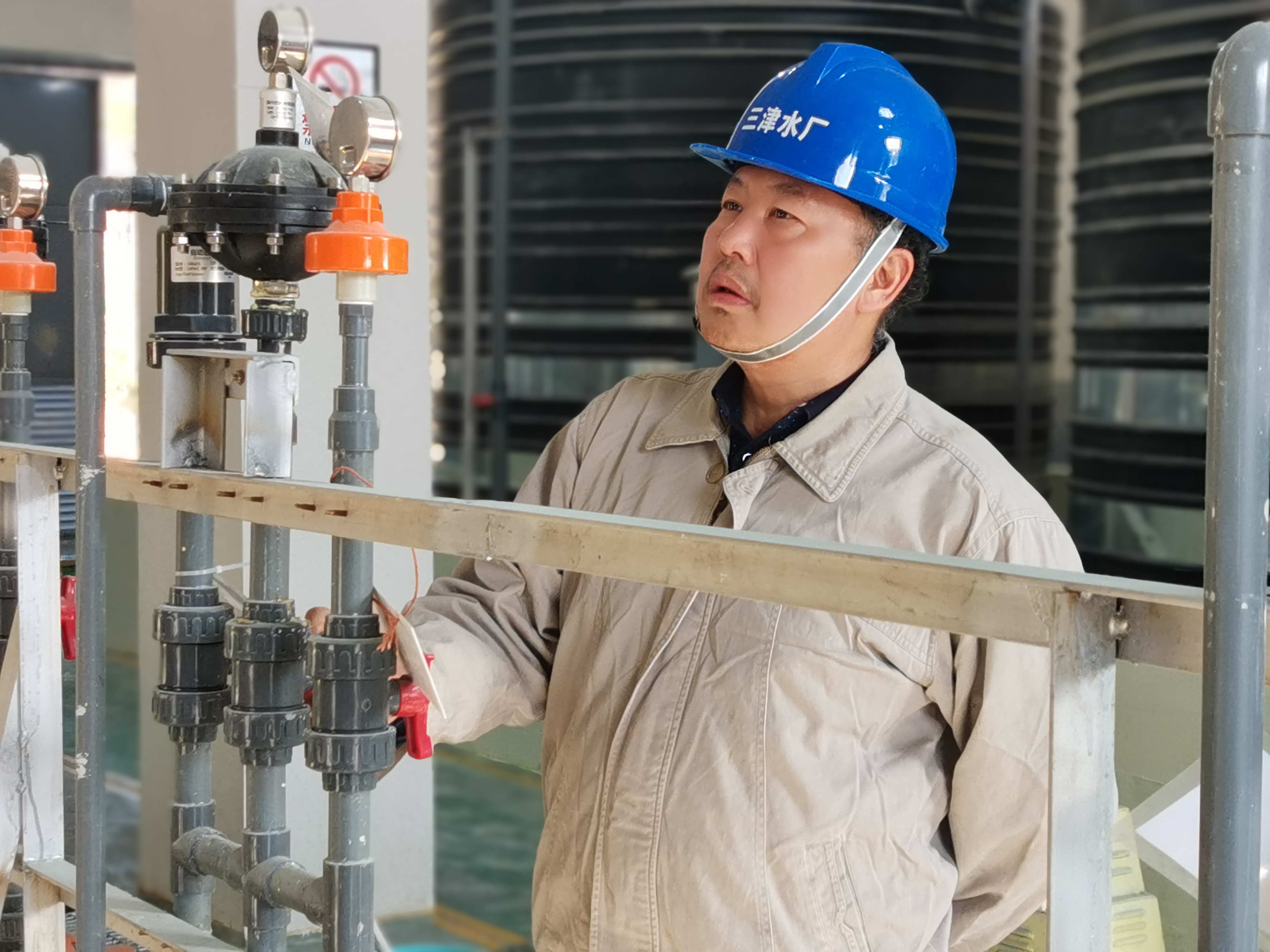 在一次次的技術改造中,易克穩聚焦生產,著眼于細微,通過“小改革”助力“大增效”。2021年初,易克穩攻克;返陌踩鎯笆褂玫入y題,讓三津水廠供水消毒工藝系統從紙質方案變成符合水廠實際生產運行的項目,至此,三津水廠使用液氯作為制水消毒劑成為歷史,完成了一項重要的技術升級改造重任。