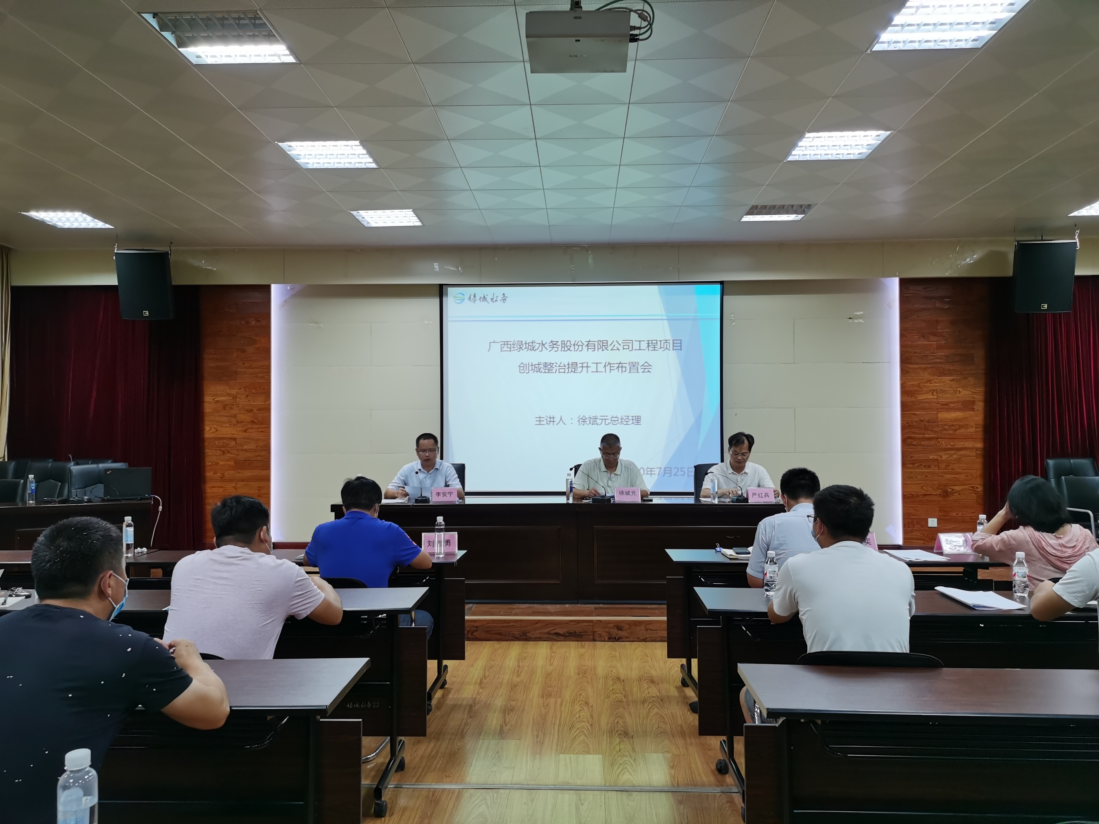 7月25日下午,股份公司在江南污水處理廠二樓會議召開工程項目創城整治提升工作布置會。公司負責工程建設相關部門以及各工程項目負責人、施工、監理單位負責人參加會議。會議由副總經理安寧主持,總經理徐斌元黨委副書記嚴紅兵出席并做重要指示。
